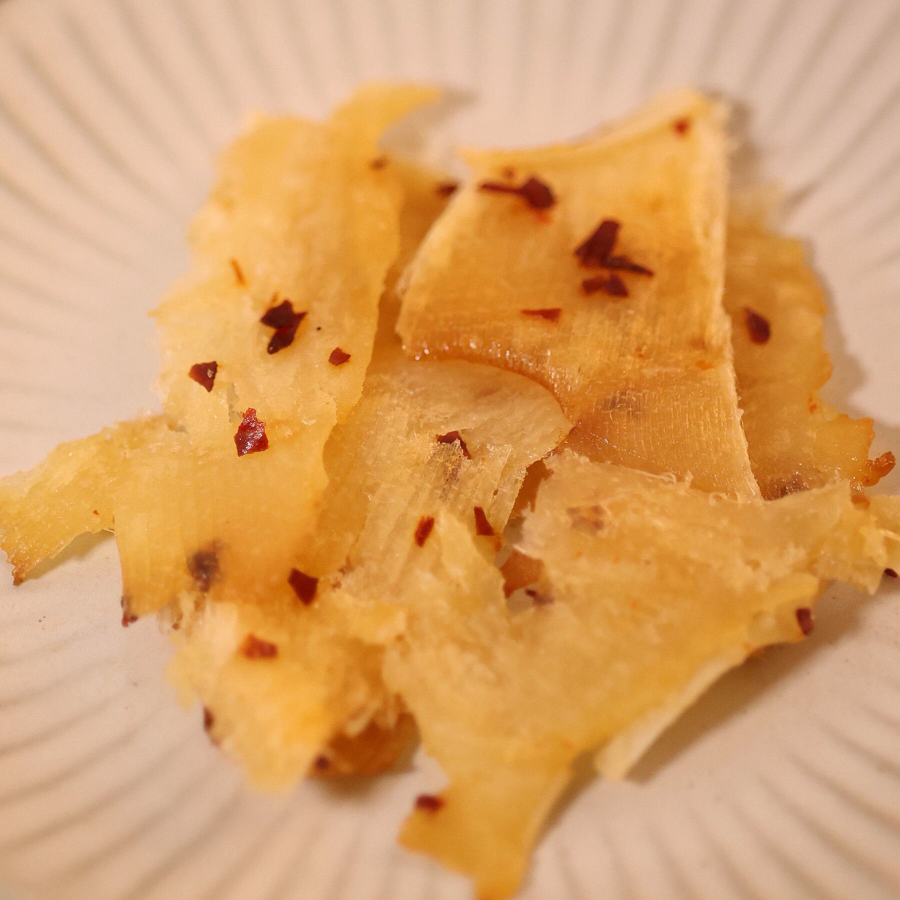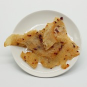 原材料:エイ(ベトナム産)、砂糖、清酒、唐辛子、還元水あめ、発酵調味料、昆布エキスパウダー、食塩、醤油/ソルビトール、トレハロース、調味料(アミノ酸等)、増粘剤(ブルラン)、リン酸(Na)、甘味料(ステビア)、香辛料抽出物、メタリン酸Na、(一部に小麦・大豆を含む)